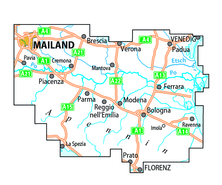 ADFC-Radtourenkarte IT-PO 7-Tage-Radtour Venedig-Florenz, 1:200.000, reiß- und wetterfest, E-Bike-geeignet, GPS-Tracks Download, mit Kilometer-Angaben