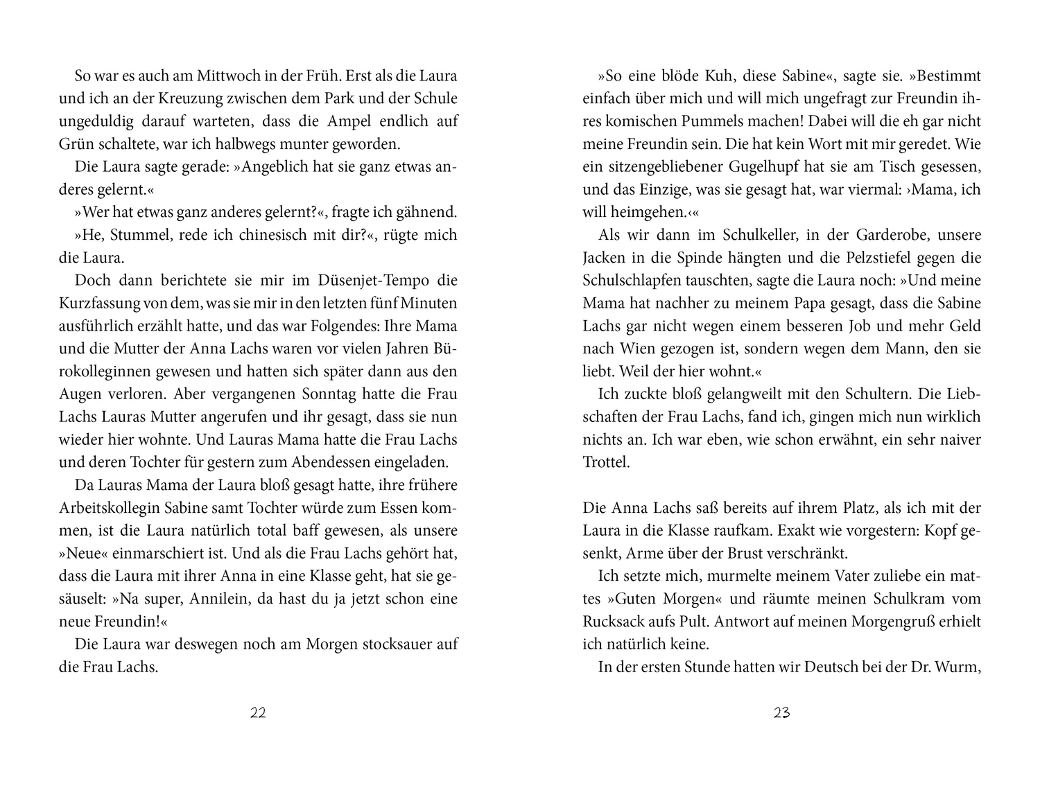 In "Als mein Vater die Mutter der Anna Lachs heiraten wollte" von Christine Nöstlinger dreht sich alles um den 11-jährigen Cornelius, der die Welt nicht mehr versteht, als er erfährt, dass sein Vater eine neue Freundin hat – und das ist ausgerechnet die Mutter seiner neuen Klassenkameradin Anna, die er überhaupt nicht leiden kann. Doch trotz aller Anfangsschwierigkeiten finden Cornelius und Anna schnell heraus, dass sie ein gemeinsames Ziel haben: Sie wollen die Hochzeit ihrer Eltern verhindern. Während ihrer gemeinsamen Versuche, die geplante Eheschließung zu sabotieren, entwickelt sich zwischen den beiden Kindern eine unerwartete Freundschaft. Cornelius erkennt, dass Anna doch nicht so schlimm ist, wie er anfangs dachte. Das Problem mit Annas Mutter bleibt allerdings bestehen. Durch die charmante und humorvolle Erzählweise schafft es Christine Nöstlinger, die Geschichte von Cornelius und Anna zu einem berührenden Abenteuer über Freundschaft, Familie und das Erwachsenwerden zu machen.