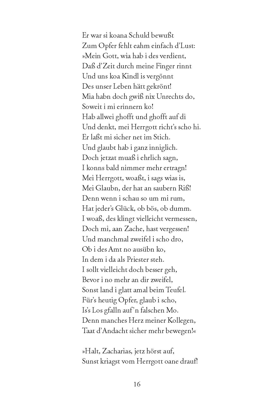 Der Sohn von Michl Ehbauer, Michael, vollzieht gewissermaßen das Vermächtnis seines Vaters und lässt dessen „Weltgschicht“ ihr Letztes Trumm folgen. Es gelingt ihm, sowohl den Sprachklang wie die Diktion des Vaters aufzunehmen, ohne in bloße Kopie zu verfallen. Und es gelingt ihm ferner, mit Takt und Fingerspitzengefühl das Leben Jesu in seiner Sprache überzeugend zu erzählen, die Schwächen und Sehnsüchte der Zeitgenossen Jesu auf uns zu übertragen, die Distanz zu überwinden – ohne dabei das religiöse Empfinden zu verletzen.