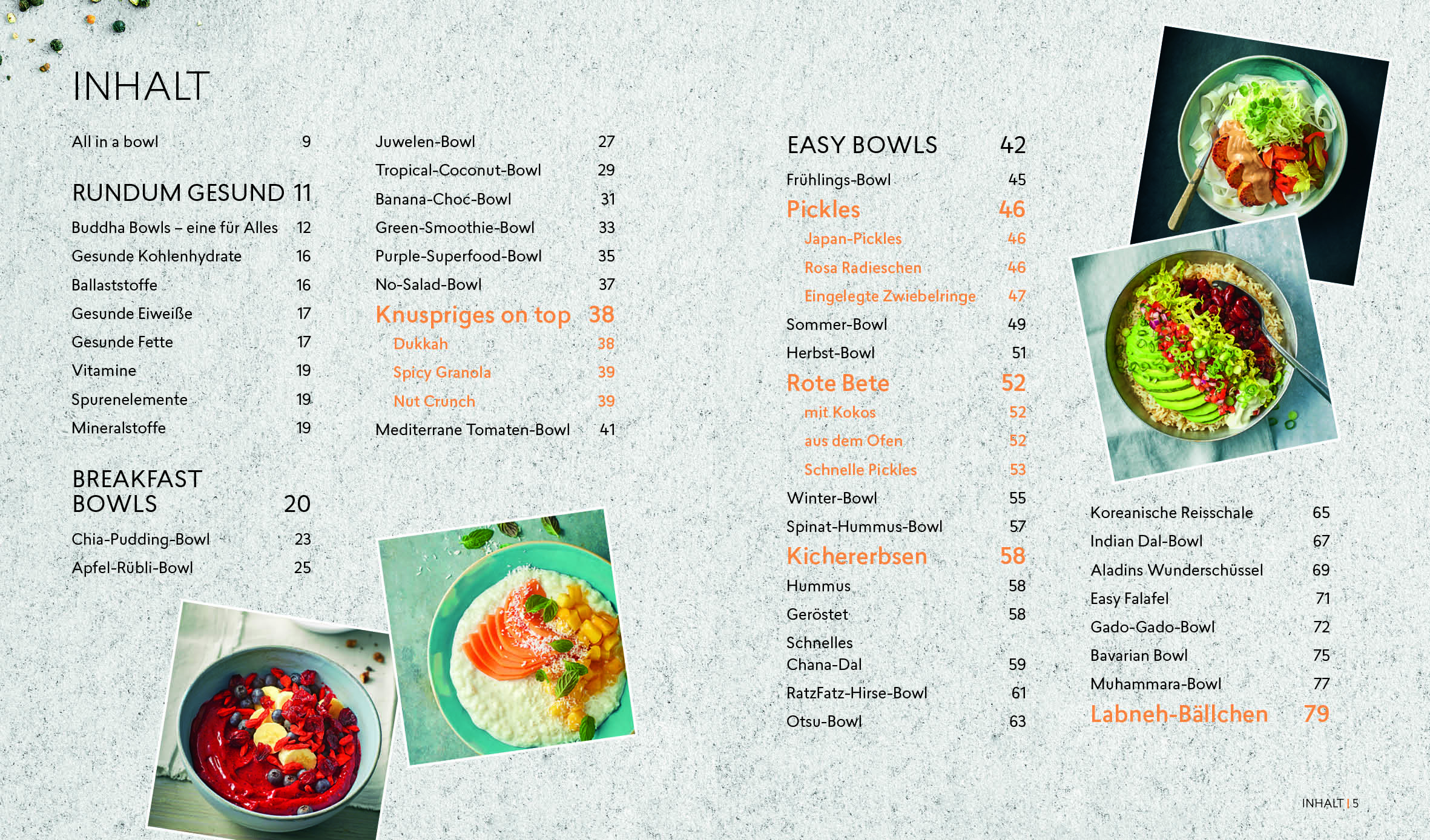 Auf den Speisekarten angesagter Lokale sind sie mittlerweile ein Muss: Buddha-Bowls machen nicht nur glücklich und zufrieden, sondern sind noch dazu richtig gesund! Die ausgewogene Zusammenstellung aus Kohlenhydrat-, Fett- und Proteinquellen versorgt den Körper mit allem, was er braucht, um Kraft zu tanken. In „Buddha Bowls“ stellt die Bestseller-Autorin Tanja Dusy 50 Rezepte für Breakfast Bowls, schnelle Easy Bowls und raffinierte Super Bowls zusammen und gibt außerdem zahlreiche Grundrezepte an die Hand, damit das Kombinieren eigener Bowl-Kreationen im Handumdrehen gelingt. So kann jeder seine eigene Lieblingskreation schaffen und auch Vegetarier und Veganer kommen voll auf ihre Kosten!