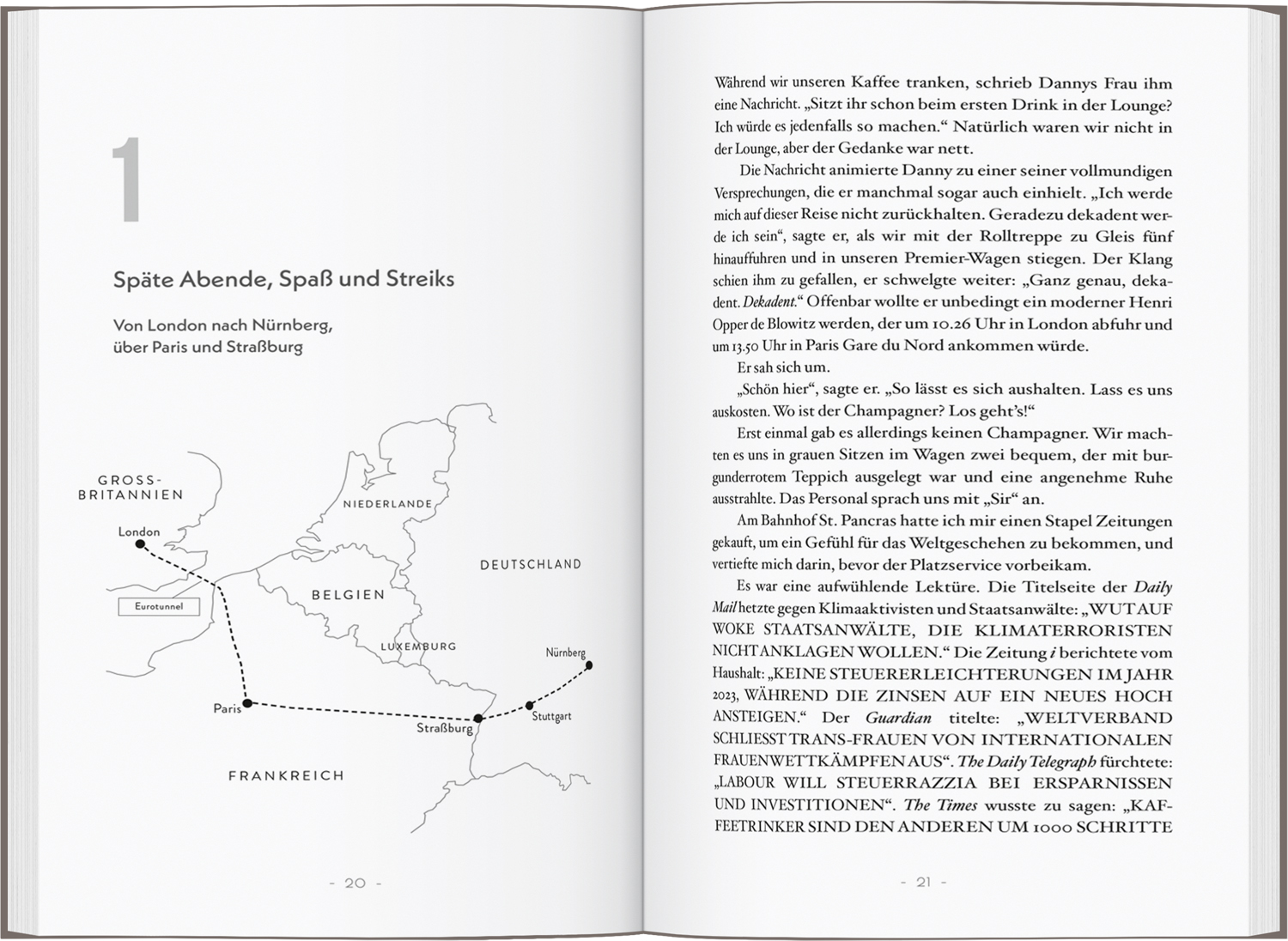 ALLES STEHEN UND LIEGEN LASSEN, in den Zug steigen und ans Ende Europas fahren – genau das haben Tom und Danny gemacht. Mit einem Interrail-Ticket in der Tasche begeben sich die beiden Herren mittleren Alters auf eine unterhaltsame und erhellende Low-Budget-Reise quer durch unseren Kontinent. In 55 Zügen geht es von London über Paris, Nürnberg, die Schweizer Alpen, Budapest und Athen bis in die entlegensten Winkel Osteuropas nach Istanbul und wieder zurück. Sie erleben Bahnstreiks, zwängen sich in Schlafwagen, verirren sich und bleiben an der Grenze stecken. Sie sinnieren über die vorbeiziehenden Landschaften – wie einst die ersten Reisenden des Orient-Express. Und trinken dabei sehr viel Rotwein. Ihr Fazit: Eine wirklich angenehme Sache, dieses Zugreisen.