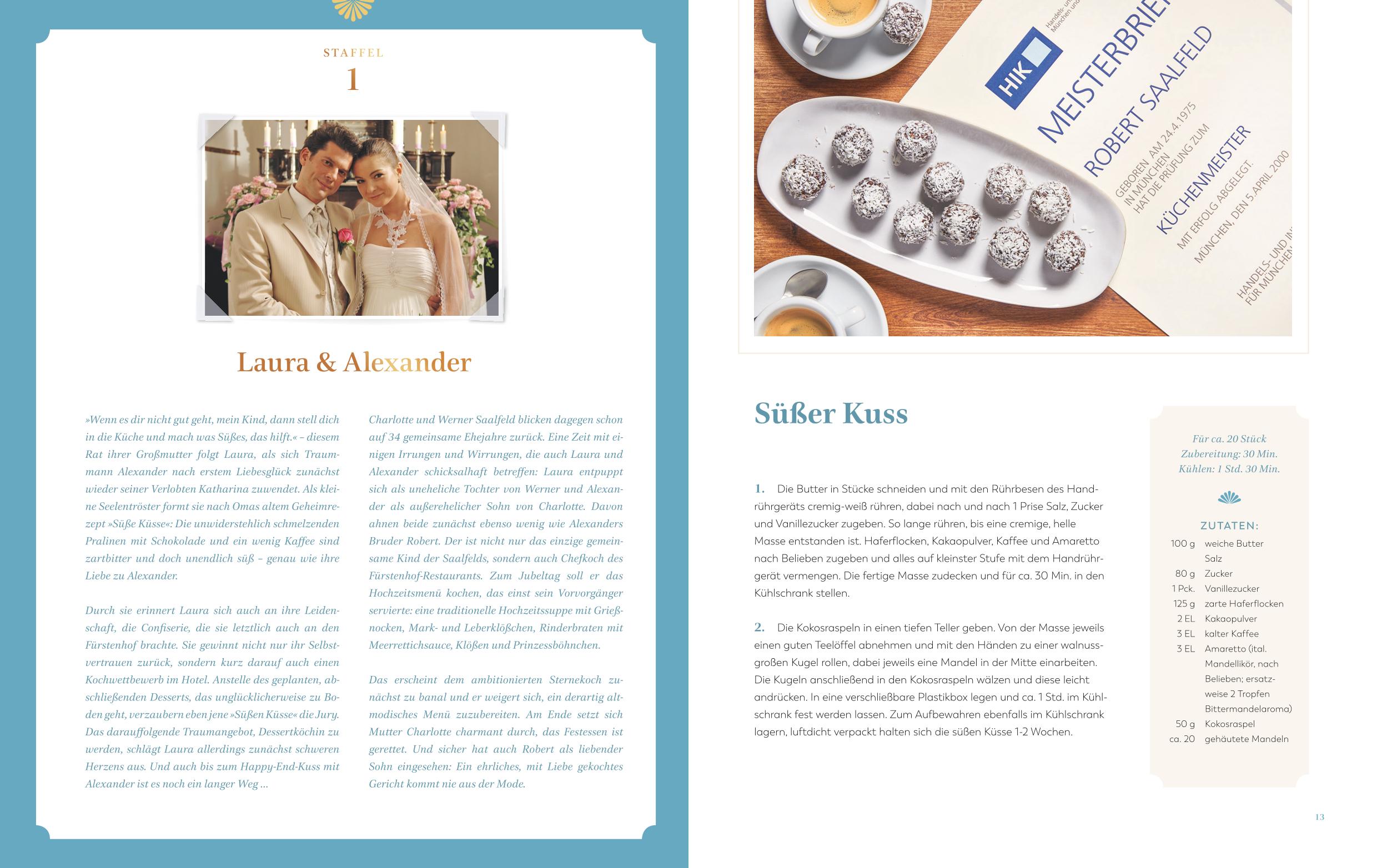 Holen Sie sich Europas erfolgreichste Telenovela und damit echtes Fürstenhof-Feeling in Ihre Küche! Dieses Buch trägt die bekanntesten Rezepte des malerischen 5-Sterne-Hotels am Fuße der bayerischen Alpen zusammen: von Hildegards traditionellem Schweinebraten über Andrés Parfait „Charlotte“, Cocktails aus der Piano-Bar, Josies veganem Schnitzel bis hin zu Lauras Geheimrezept für den „Süßen Kuss“. Das besondere Extra: Neben exklusiven Einblicken finden sich im Kochbuch auch Lieblingsgerichte der Charaktere. Genießen wie am Fürstenhof – mit diesem Buch steht dem echten "Sturm"-Menü nichts mehr im Weg: ein Muss für alle Serienfans!