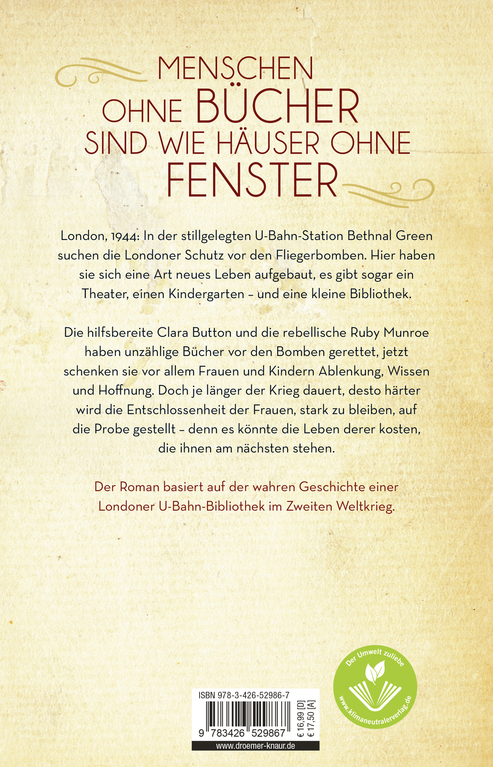 Die hilfsbereite Clara Button und die rebellische Ruby Munroe haben unzählige Bücher vor den Bomben gerettet, jetzt schenken sie vor allem Frauen und Kindern Ablenkung, Wissen und Hoffnung. Doch je länger der Krieg dauert, desto härter wird die Entschlossenheit der Frauen, stark zu bleiben, auf die Probe gestellt – denn es könnte die Leben derer kosten, die ihnen am nächsten stehen.