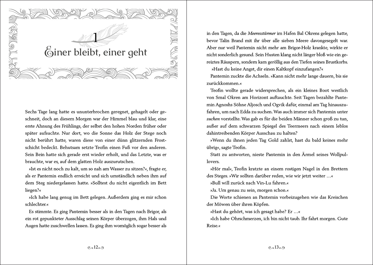 Talin Brand hat Edda durch das ganze Inselreich verfolgt. Und er hat sie gefunden. Kurz bevor sie mit ihrem Schwebenden Schiff zu den Letzten Inseln aufbrechen will, versetzt Brand ihr einen tödlichen Messerstich und stößt sie in die grauen Fluten des Teermeers. Aber Edda ist eine Tochter der Silbersee, die Geschöpfe des Meeres lassen nicht zu, dass sie stirbt. Denn noch immer steht ihr eine große Aufgabe bevor. Und auf der Hoch-Insel Astador wartet der Schwanenthron.