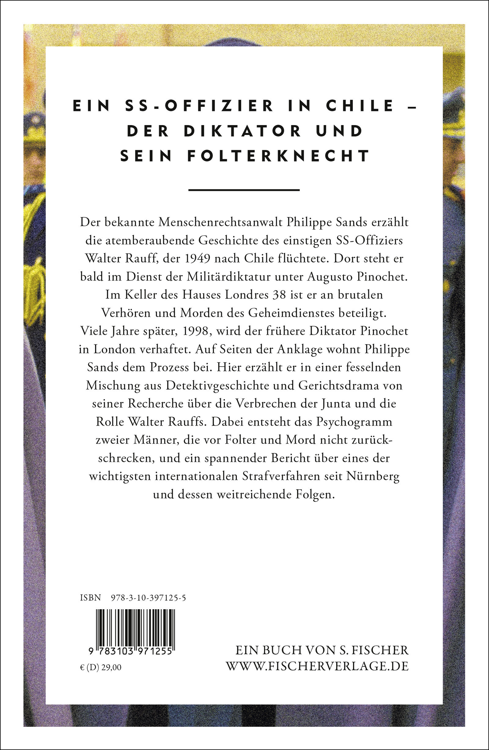 Sands’ einzigartige Mischung aus Detektivgeschichte, Gerichtsdrama und Lebensgeschichten stützt sich auf Interviews mit wichtigen Akteuren und umfangreiche Recherchen in Archiven auf der ganzen Welt. Auf dieser Basis gelingt ihm das fesselnde Psychogramm zweier Männer, eine Doppelgeschichte über Massenmord und Folter und über die Möglichkeiten und Grenzen des Rechts, die zwei brutale Diktaturen und mehrere Jahrzehnte überspannt. Und zugleich ein spannender Bericht aus erster Hand über ein internationales Strafverfahren von historischer Bedeutung.
