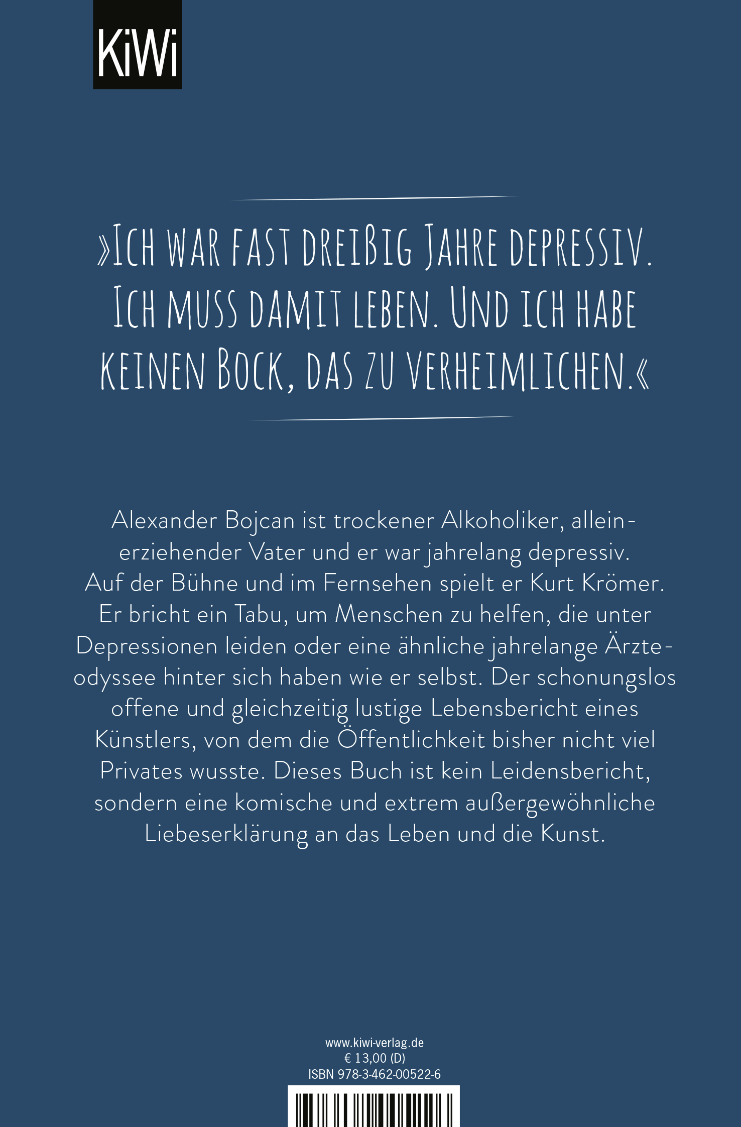 Alexander Bojcan ist 48 Jahre alt, trockener Alkoholiker, alleinerziehender Vater und er war jahrelang depressiv. Auf der Bühne und im Fernsehen spielt er Kurt Krömer. Er will sich nicht länger verstecken. Dieses Buch ist der schonungslos offene Lebensbericht eines Künstlers, von dem die Öffentlichkeit bisher nicht viel Privates wusste.