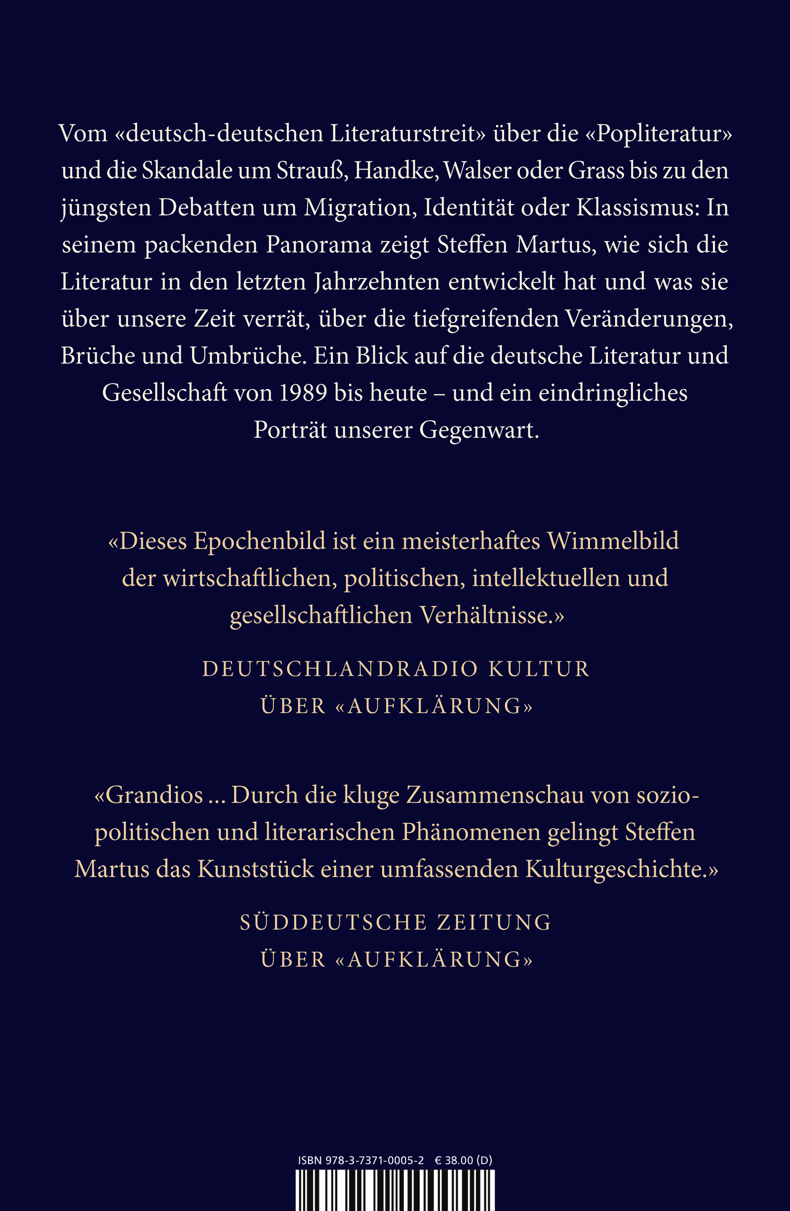 Steffen Martus zeichnet ein Panorama der deutschen Literatur und ihrer Gesellschaft von 1989 bis zu den jüngsten Debatten um Migration, Identität oder Klassismus. Er öffnet die Augen für die Vielfalt der Literatur und zeigt, was sie über die Gegenwart verrät und für die Selbstverständigung unserer Gesellschaft bedeutet.