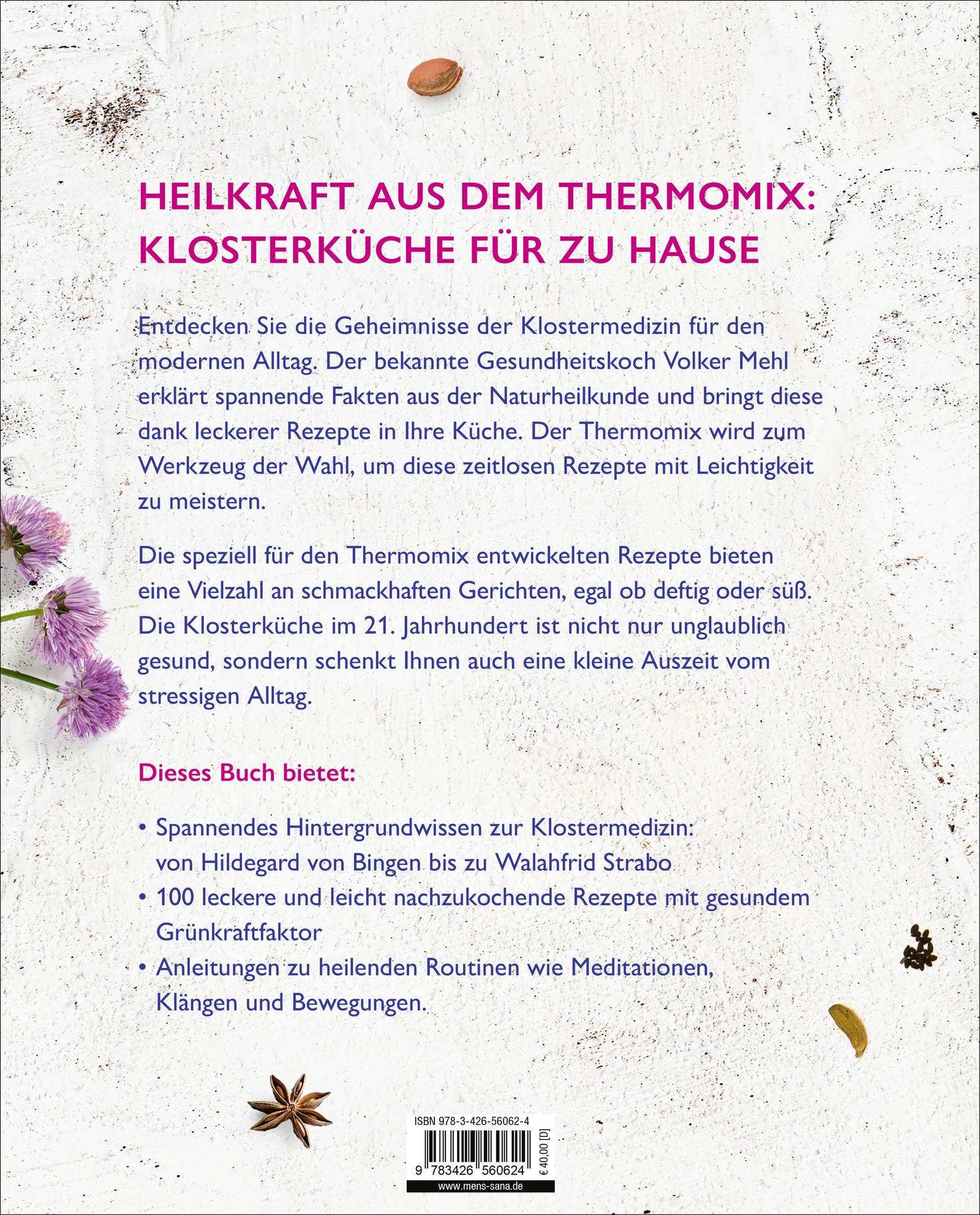 Klosterküche und Thermomix – passt das überhaupt zusammen? Ja, sagt der erfahrene Koch, Ernährungsberater und Bestsellerautor Volker Mehl. Der heutige Thermomix ist der Grundidee aus der traditionellen Klosterküche gar nicht mal so fern: Im Mittelalter hat man ganz überwiegend mit nur einem Kessel über dem Holzfeuer gekocht.