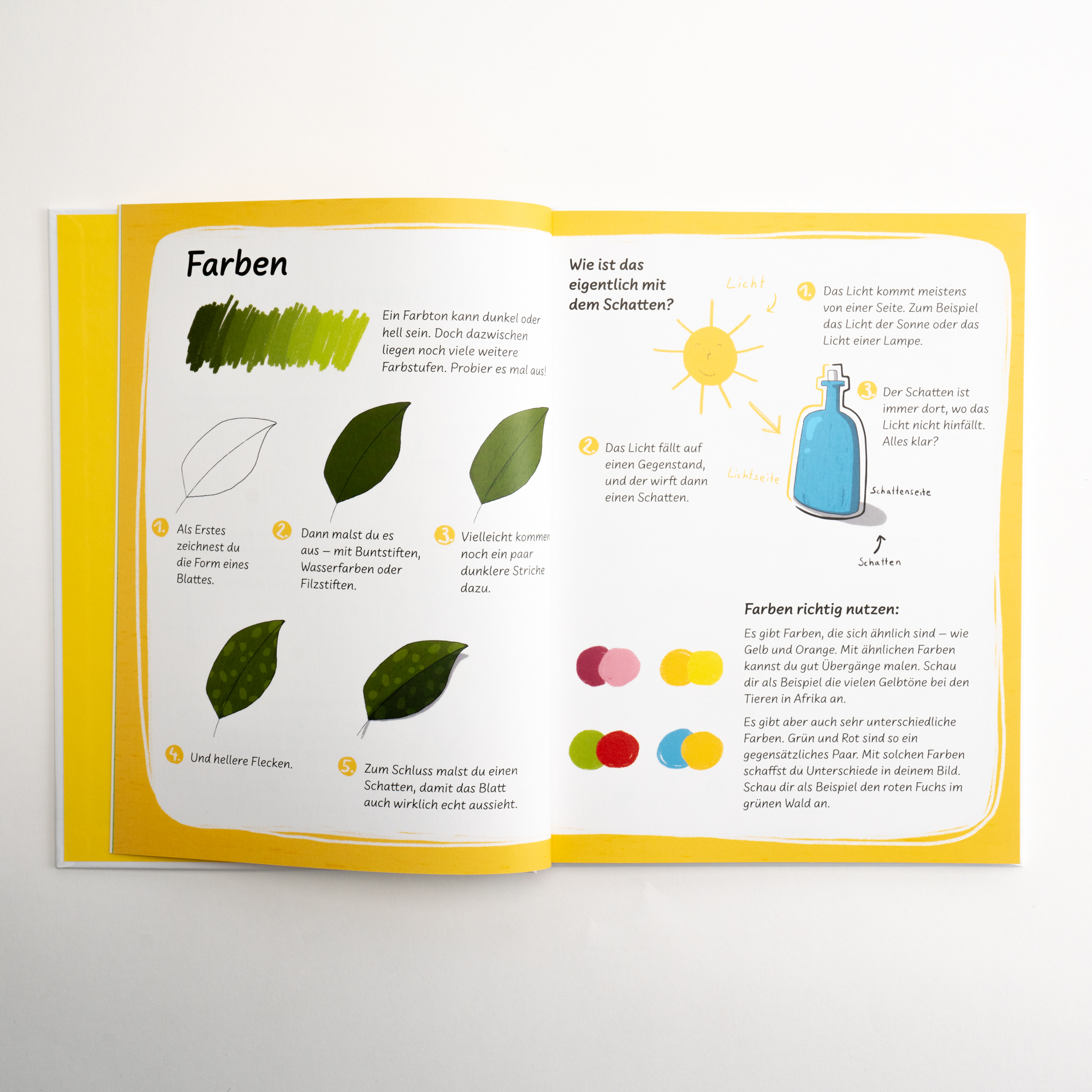 Wenn Kinder fragen, was sie schenken könnten, heißt es oft: «Mal mir doch ein Bild!» Aber auch ohne Anlass wird im Kinderzimmer und in der Kita gern gemalt. In diesem besonders liebevoll gestalteten Buch lernen kleine Künstler:innen, wie man in wenigen Schritten Tiere, Menschen und Pflanzen malen und so auf dem Papier eine ganze Welt erschaffen kann.