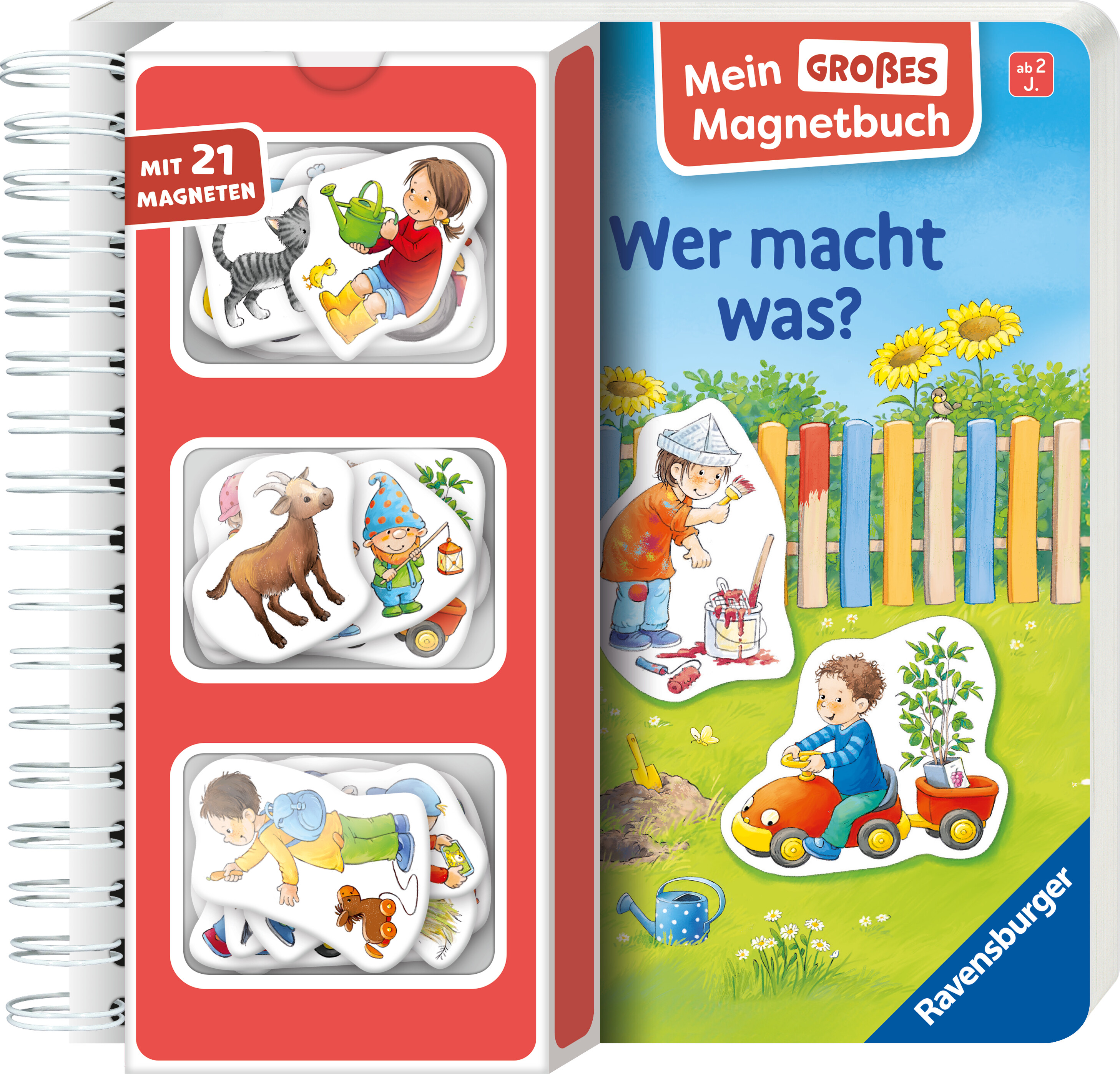 Hier sind ja viele Leute unterwegs! Aber wer macht eigentlich was? Bauer Emil füttert auf dem Bauernhof die Kühe, Lukas fotografiert die Tiger im Zoo und Nele baut auf dem Spielplatz eine große Sandburg. Und was machen Mara, Mateo und Opa? Große Spielszenen laden dazu ein, 21 Magnete den richtigen Bildern zuzuordnen oder auf den vollflächig magnetischen Seiten ganz frei damit zu spielen. Nach dem Spiel können alle Magnete direkt wieder im Buch verstaut werden.