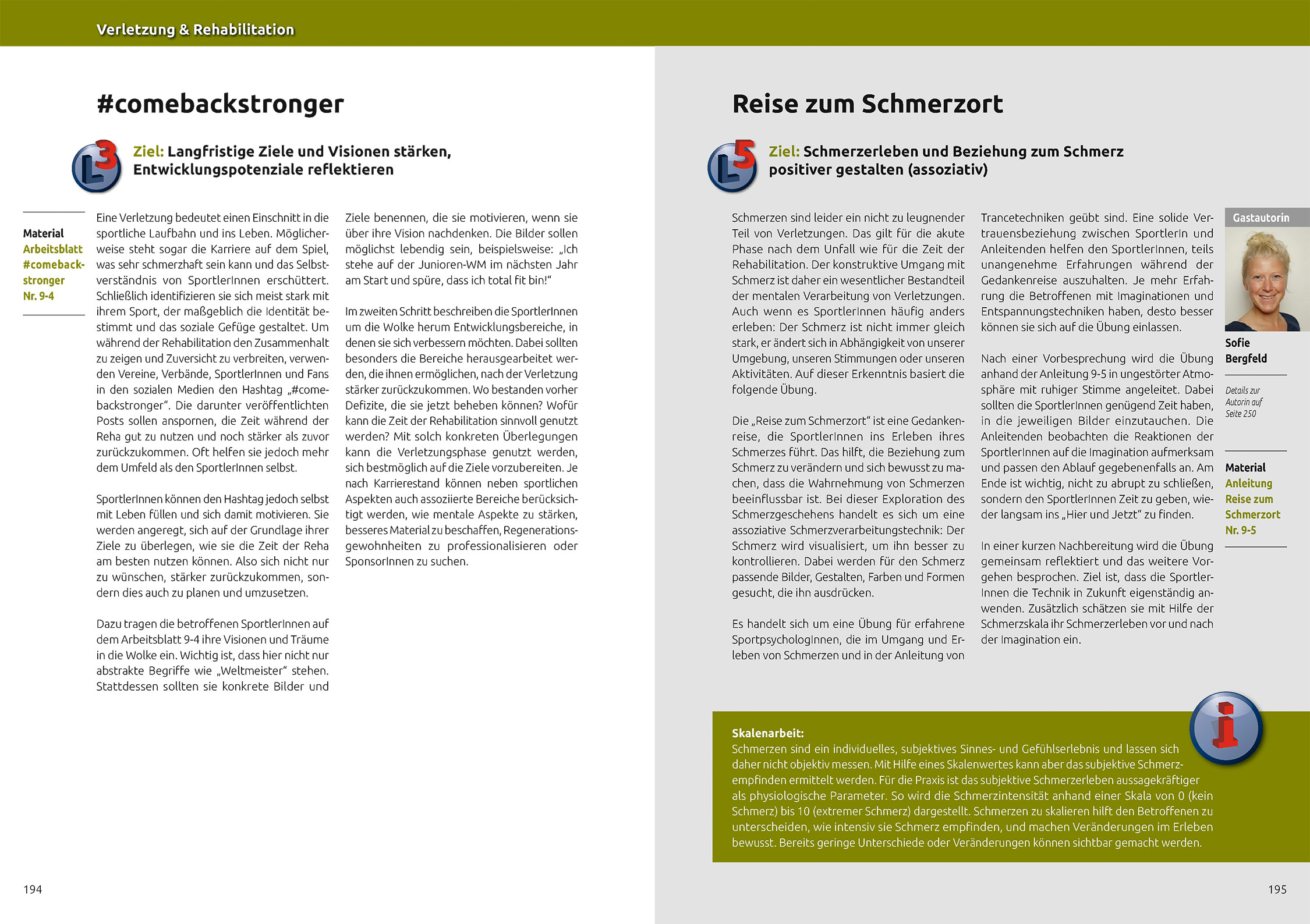 Mentale Stärke bedeutet, seine Leistung auf den Punkt genau abzurufen. Das vorliegende Buch unterstützt SportlerInnen aller Altersbereiche, diese Fähigkeit zu entwickeln. Dabei lernen sie Techniken und Strategien, um mit sich selbst, ihren Gedanken und Emotionen sowie den Anforderungen des Wettkampfsports optimal umzugehen. Neben klassischen Themen des Mentalen Trainings, wie dem Aufbau von Selbstvertrauen, dem Vorstellungstraining und dem Wettkampfmanagement, werden auch neue Ideen der modernen Sportpsychologie, wie etwa die Arbeit an Achtsamkeit und Gelassenheit sowie die Begleitung verletzter SportlerInnen, integriert. In einem weiteren Kapitel für TrainerInnen finden sich Übungen und Impulse zu Themen wie Führungsstil, Kommunikation und Körpersprache. Auf der Basis des bewährten Konzepts aus Band 1 haben die Autoren hier ihr Praxiswissen aus dem Mannschafts- und Einzelsport für SportlerInnen, Eltern, (Mental-)TrainerInnen und SportpsychologInnen konkret und praxisnah zusammengefasst. Um eine Methodenvielfalt zu erhalten wurden sie durch Gastbeiträge namhafter ExpertInnen der Sportpsychologie, der Ernährungs- und Sportwissenschaften sowie der Medizin unterstützt. In zehn Kapiteln werden über 150 konkrete Übungen, Ideen und Methoden beschrieben, die mit zahlreichen Anleitungen, Arbeitsblättern und Handouts als Druckvorlagen ergänzt werden. Buch mit 268 Seiten plus 98 Übungsblätter als Download zum Ausdrucken.