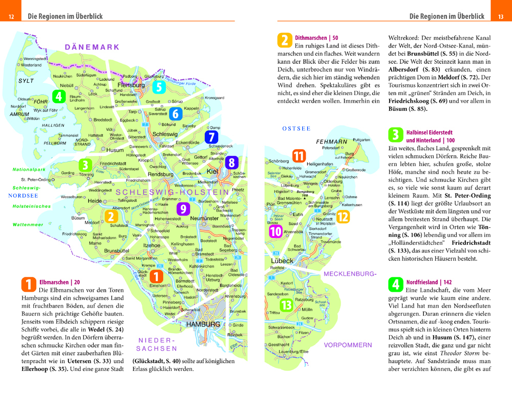 Schleswig-Holstein ist das Land zwischen den Meeren. Im Westen die raue, manchmal etwas ungestüme Nordsee, deren Wellen sich krachend am Strand brechen, im Osten die eher ruhige Ostsee mit ihren zahlreichen Stränden, verträumten Dörfern und den tief eingeschnittenen Buchten, an deren Ende Städte mit maritimem Charme liegen. Dieser Reiseführer beschreibt beide Küsten, gibt zahllose Tipps für geruhsame Strandferien. Das Buch führt aber auch ins Hinterland, denn auch dort lässt sich sehr viel entdecken. So die Holsteinische Schweiz mit ihren zahlreichen Seen und hügeligen Landschaften. Oder in eher weniger bekannte Städte wie Rendsburg, Neumünster oder Lauenburg, die mit ganz unerwarteten Kleinoden an Museen oder einer charmanten Altstadt aufwarten. Man muss nur hinfahren und sie entdecken. Vorgestellt werden auch einige fast verborgene Winkel des Landes wie die von schwerem Marschboden geprägten Elbmarschen mit ihren vielen prächtigen reetgedeckten Bauernhöfen oder geschichtsträchtige Orte wie Bordesholm, Ratzeburg oder Ahrensburg, wo schöne Schlösser oder Kirchen stehen. Neben vielen Anregungen zu interessanten, teils wenig bekannten Museen werden auch viele Tipps für Aktivurlauber und Radwanderer gegeben, außerdem eine sehr ausführliche Übersicht zu den wichtigsten Festen im Land. REISE KNOW-HOW - Reiseführer für individuelle Reisen