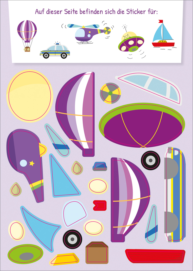 Das besondere Stickerheft ist ein Allround-Talent, um die Feinmotorik zu trainieren und dabei richtig Spaß zu haben. Aus einzelnen Stickern entsteht mithilfe einer Schritt- für-Schritt-Anleitung ein fröhliches Motiv. Noch fehlende Details malen die Kinder einfach selbst auf die beschreibbaren Sticker. Ein Heißluftballon über den Bergen, ein Bagger auf der Baustelle oder ein Helikopter über der Stadt sind einige Motive, die gestickert werden können. Viel Stickerspaß für Fahrzeug-Fans ab 4 Jahren.