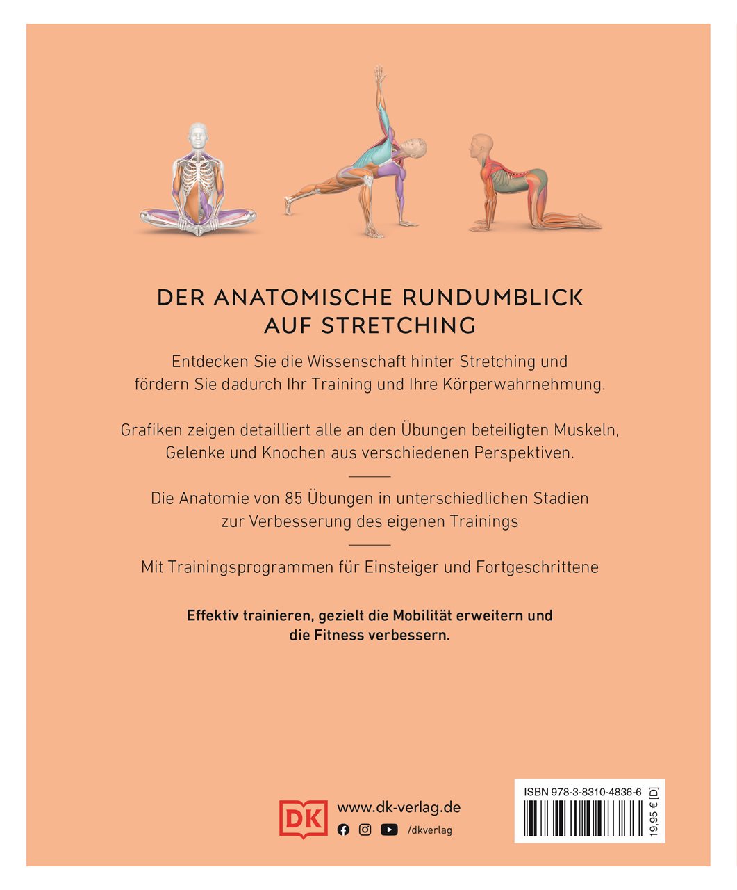Ob Sport, Reha oder Homeoffice: Stretching ist das ideale Training. Gerade zu langes und häufiges Sitzen kann auf Dauer zu Rückenschmerzen und verspannten Schultern führen. Dieses Buch enthält über 100 effektive Übungen und 30 Workouts für Einsteiger*innen und Fortgeschrittene. Der Clou: Stretching wird aus dem anatomischen Blickwinkel erklärt. Detaillierte Grafiken zeigen die wichtigsten Dehnübungen und geben Einblicke in die Muskel- und Gelenkarbeit. Ein perfektes Trainingsbuch für Menschen, die aktiv, beweglich und geschmeidig bleiben wollen.