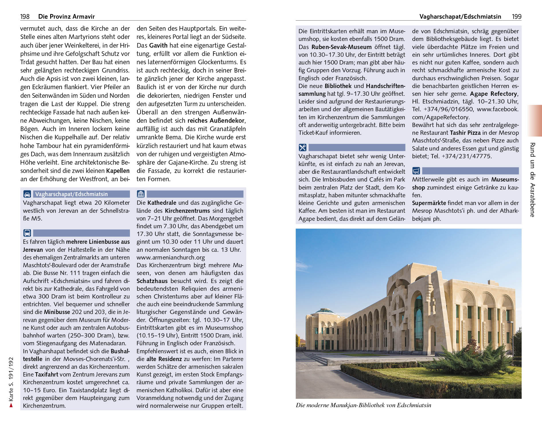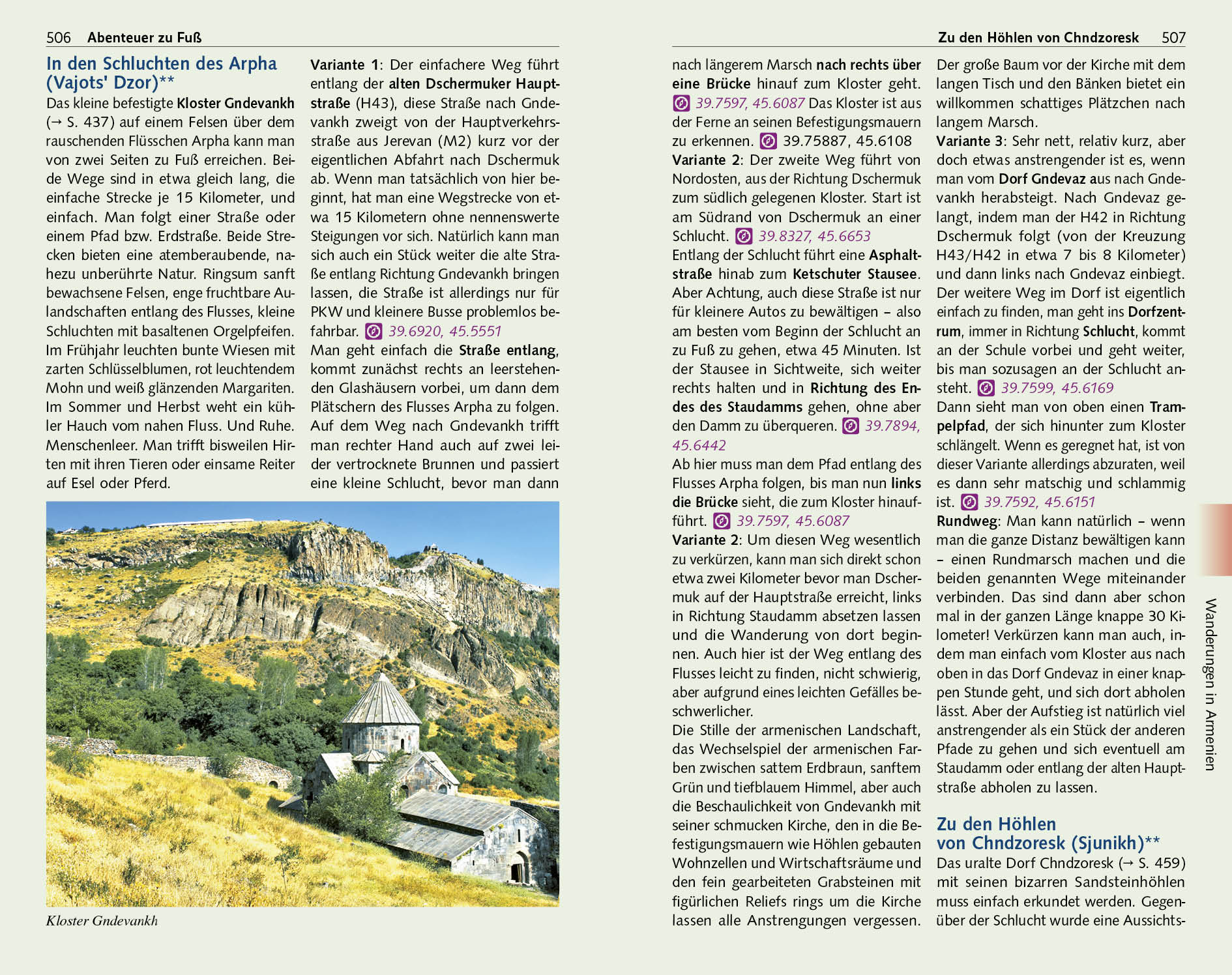 Armenien, südlich des Kaukasus zwischen Georgien, der Türkei und Aserbaidschan gelegen, ist eines der ältesten christlichen Länder der Erde. Das "Land der Steine", wie Armenien von seinen Bewohnern liebevoll genannt wird, bietet atemberaubende Gebirgslandschaften und jahrtausendealte Baudenkmäler von unschätzbarem Wert. In den letzten Jahren hat sich vielerorts eine bessere touristische Infrastruktur entwickelt, und Armenien ist verstärkt als Reiseziel für Kulturinteressierte, aber auch für Wanderer in den Blickpunkt gerückt. Im Berliner Trescher Verlag ist jetzt in 11., aktualisierter Auflage ein Reiseführer über Armenien erschienen, der kompetent dabei hilft, dieses ungewöhnliche Reiseland zu entdecken. Dieser Reiseführer richtet sich vor allem an kulturinteressierte Reisende. Er stellt neben der lebendigen Hauptstadt Jerevan und dem berühmten Ararattal auch die Provinzen im Landesinneren, den grünen Norden sowie den unwegsamen wilden Süden vor. Das armenische "Stonehenge" bei Goris wird ebenso beschrieben wie der Sevansee und die zahlreichen romantischen Klöster. Die UNESCO-Welterbestätten Garni, Sanahin, Haghbart und Geghard sowie das berühmte Kloster Tathev und das armenische Kirchenzentrum Edschmiatsin werden gebührend gewürdigt. Ausführliche Informationen über Geschichte und Baukunst stehen neben Kapiteln über armenische Sitten und Gebräuche sowie über die Landschaft und ihre Bewohner. Ein ausführliches Extrakapitel macht Vorschläge für Wanderungen auch abseits der bekannten Touristenpfade. Viele aktuelle praktische Tipps, zahlreiche Übersichtskarten und Lagepläne, ein Sprachführer und Hinweise zu Unterkunft und Verpflegung erleichtern die Vorbereitung und Durchführung einer Armenienreise. >>> Weitere Reiseführer zum Kaukasus und zu Osteuropa finden Sie auf der Website des Trescher Verlags