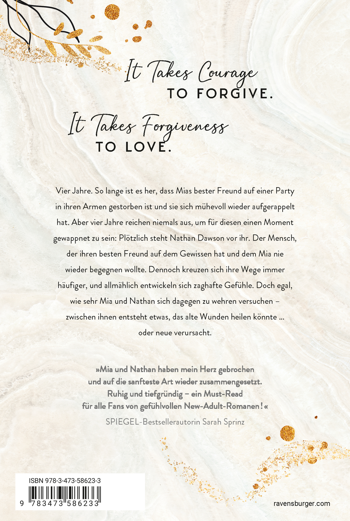 Vier Jahre. So lang ist es her, dass Mias bester Freund auf einer Party gestorben ist. Aber trotzdem ist sie nicht für den Moment gewappnet, als Nathan Dawson plötzlich vor ihr steht. Der Mensch, der ihren besten Freund auf dem Gewissen hat. Ihre Wege kreuzen sich immer häufiger, und allmählich entwickeln sich zaghafte Gefühle. Doch egal, wie sehr Mia und Nathan sich dagegen zu wehren versuchen – zwischen ihnen entsteht etwas, das alte Wunden heilen könnte … oder neue verursacht.