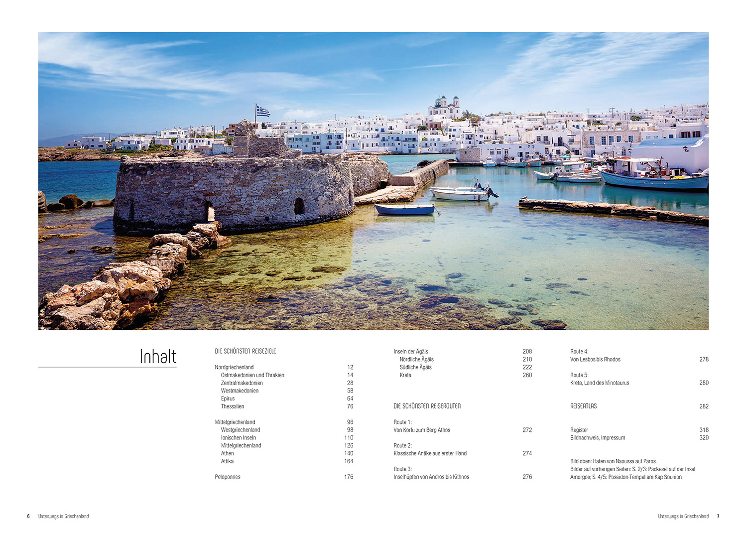 Griechenland – allein der Name weckt Bilder von legendären antiken Städten, Inselparadiesen, blau-weißer Architektur und gutem Essen und Trinken. So geht es in diesem Buch in das Land der Antike, zu den Inseln des Lichts, die sich mitten aus dem türkisen Mittelmeer erheben, zu Tavernen, in denen man unter Strohdächern Retsina trinkt, zu den altehrwürdigen Meteora-Klöstern und mitten auf die erhabene Akropolis. Die Reise führt von Nordgriechenland zur Hauptstadt Athen, quer über den Peleponnes und endet schließlich am südlichsten Punkt der griechischen Inselwelt auf Kreta. Dazwischen liegen UNESCO-Welterbestätten, die drei Finger der Chalkidiki, das berühmte Schiffswrack auf Zakynthos oder die Partyinsel Mykonos. - Ob Inselhopping, Strandurlaub oder Kulturreise: Die schönsten landschaftlichen und kulturellen Höhepunkte - Mit praktischen Reisetipps und detailliertem Reiseatlas