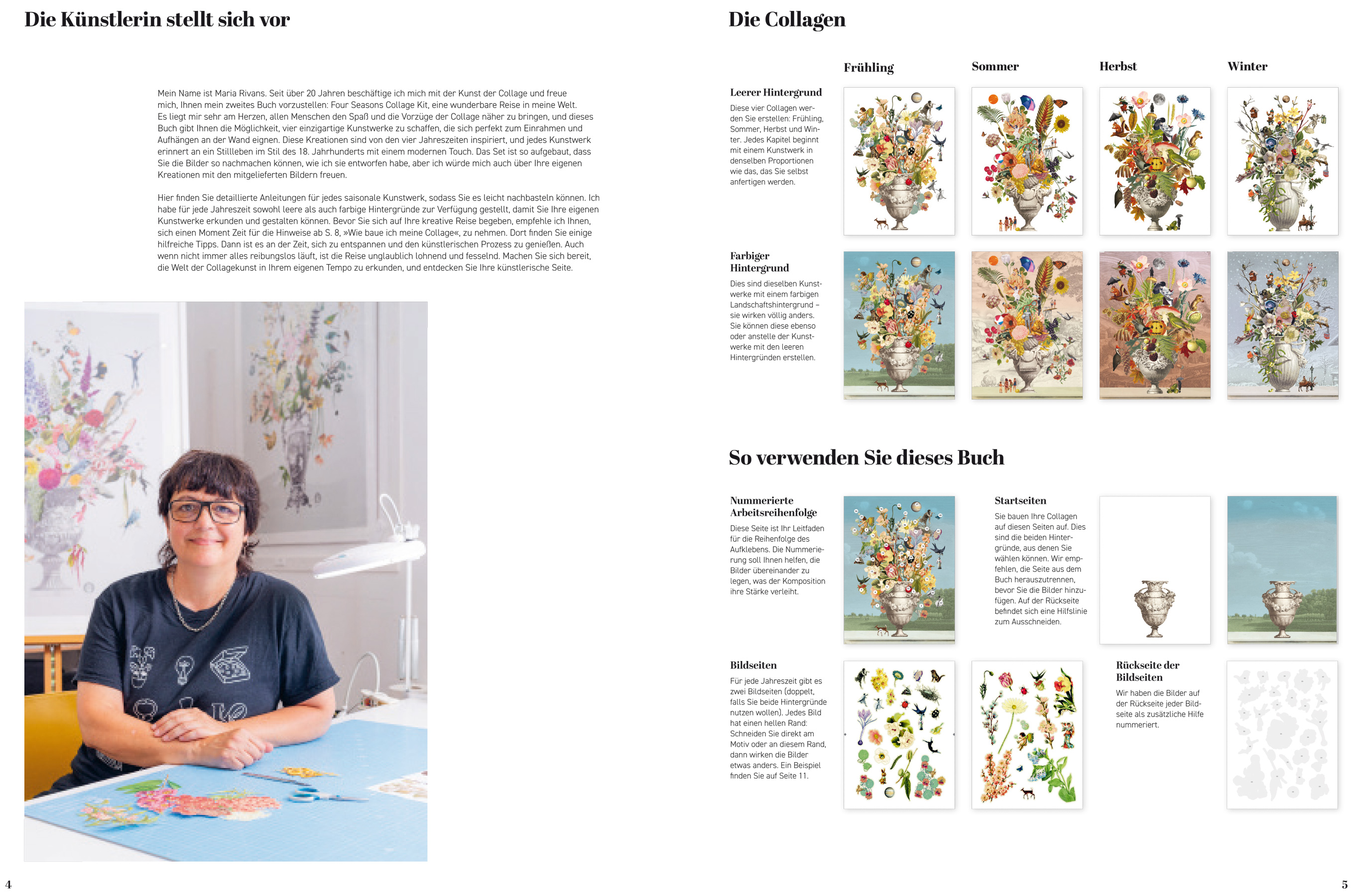 Die passende Collage für jede Jahreszeit »Vier Jahreszeiten« ist ein originelles Konzept mit einem reizvollen Versprechen. Im gleichen Stil wie die «Pin-ups», die ihr Markenzeichen sind, stellt Maria Rivans vier «Jahreszeiten» mit allen Bildern und Hintergründen vor, die Sie brauchen, um sie selbst nachzustellen. Nach dem befriedigenden Prozess der Zusammenstellung werden die vier fertigen Collagen zusammen als komplementäre Kunstwerke Ihre Wände schmücken. Maria Rivans bietet eine große Auswahl an Hintergründen, Hunderte von überraschenden Collagenelementen (die der Leser selbst ausschneidet) und den praktischen Rat: Nutzen Sie Ihre eigene Kreativität für ein einzigartiges Collagen-Ergebnis!