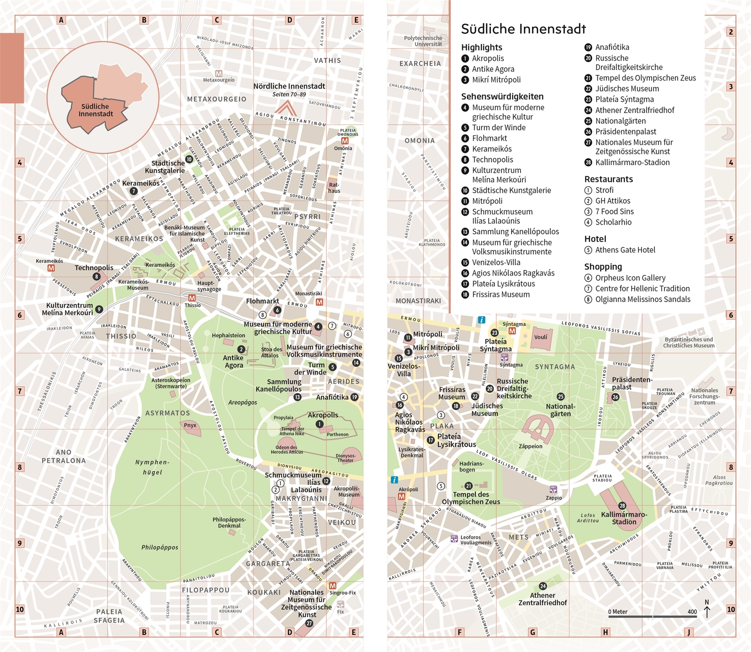 - Hohe Benutzerfreundlichkeit: Detaillierte, übersichtliche und große Karten ermöglichen es Ihnen, sich vor Ort zu orientieren. Sie weisen bereits auf einen Blick den Weg zu Restaurants, Hotels, Shops oder Sehenswürdigkeiten. Auch dank des Metro-Fahrplans navigieren Sie sich ganz einfach durch Ihr Abenteuer. Mit einer wetterfesten Extra-Karte zum Herausnehmen hält Sie selbst bei schlechtem Wetter nichts vom Sightseeing in Athen ab.