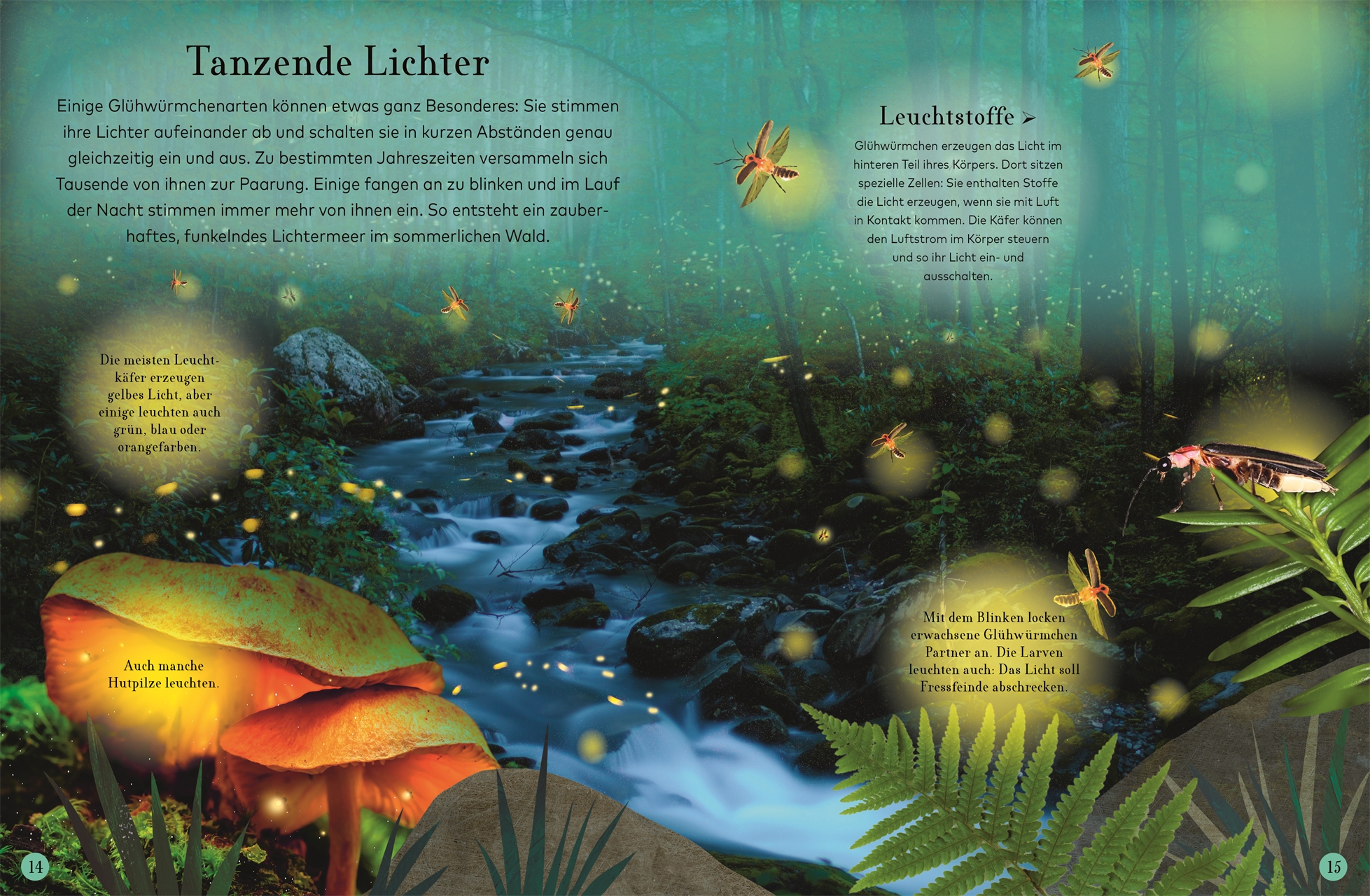 Die Milchstraße als Lichterband am Nachthimmel oder Glühwürmchen auf dem Weg durch den Wald - der Mix aus Naturfotos und Illustrationen macht das Ganze zu einer wundervollen Entdeckungs-Tour."Duda - Kölner Rundschau, 20.02.2021